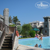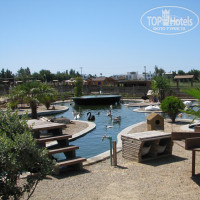 Теперь плюсы. Главный - это сам отель. То что мы хотели - зелёная территория с 2-3 этажными домиками. Рядом с нашим номером было гранатовое дерево с плодами в кулак (жаль что ещё зелёными). Воздух чистейший, море рядом. Ещё надо сказать о настоящем, а не показном, хорошем отношении со стороны греков. У нас был заказан Стандарт, а дали двухкомнатный Фэмели. Вечером сидели на террасе (1 этаж), а дочка бегала по лужайке. Рядом комплекс детских бассейнов разного уровня с Замком и водными горками. Питание выше всяких похвал - вкусно и разнообразно. Запомнилась вкуснейшая баранина с овощами и кролик. Впервые попробовали жареные сардины. Само собой фрукты и разнообразные десерты. Всегда есть что-то для малышей. Ну, в общем, пару раз реально объелись. Пиво слабенькое, вино больше понравилось белое (а вот на Родосе красное лучше). Очередей нет, если что-то заканчивается, тут же приносят смену.
