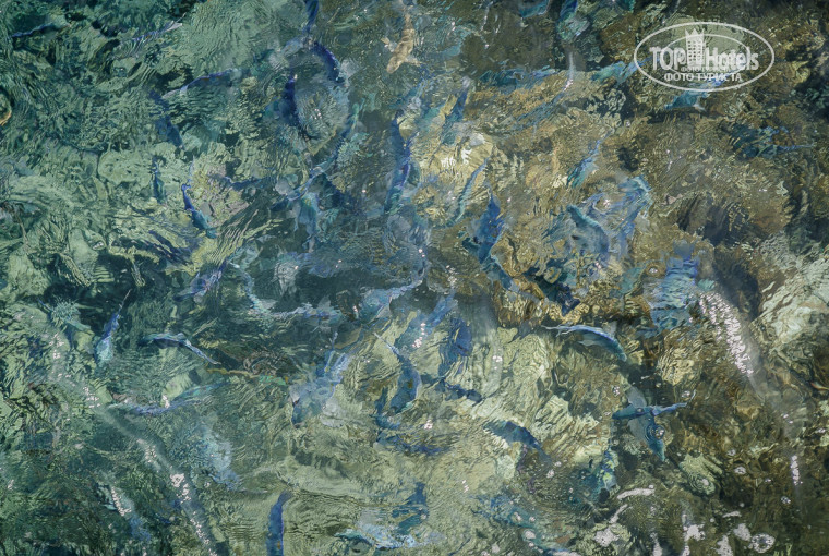 Море далековато. 2 линия, метров 30 тоннель с музыкой, потом на шаттле либо пешочком еще метров 400. Во время нашего приезда был отлив и моря не было-обнажились мертвые кораллы. В первой половине дня как правило сильный ветер и на понтоне красный флаг, в море нельзя. После обеда флаг менялся на желтый. Но за буйки не заплывать, за этим следит египтянин со свистком. И плавая с маской, можно поцарапаться о соотечественника, т.к. народу много, а места маловато. Если планируете только с маской плавать, тапки для моря не нужны, лучше ласты. Для Реханы Шарм Резорт 4 и Реханы Роял Резор 5 пляж общий.