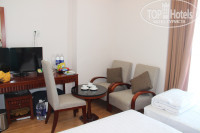Номер не большой, угловой с видом на море и город. Два ока, большой шкаф, сейф, телевизор. ОЧЕНЬ все достойно!