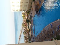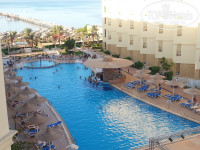 В отель приехало нас очень много, человек около 25-30, поэтому пришлось немного подождать пока всех зарегистрируют. Я отдыхала с подругой, ее сыном 21ого года и его девушкой. Мы ранее их заявили как молодоженов, поэтому им дали номер с одной большой кроватью и видом на бассейн (№ 310), а мы жили напротив с видом на пустыню (слева), соседний отель (впереди) и море (справа)-Красиво (№307)! В номере минибар (бесплатный). Правда в нем 1,5 литровая бутылка воды, в жестяных банках сола, спрайт или фанта (две банки местного производство). Вот и весь минибар. Есть электрочайник, чай, кофе, сухие сливки, сахар, в пакетиках из расчета на двоих. В ванной в маленьких тюбиках, гель для душа, мыло, шампунь,ополаскиватель для волос. Правда кладут один раз и если кончилось не докладывают, только если выловишь уборщика и попросишь. Уборка, каждый день, но только те места, где ходишь, т.е. под креслами и стулом и столами не протиралось ни разу. "Ревизорро" на них нет. Полотенца меняли каждый день, даже если не бросили на пол. Нашим молодым людям приносили торт, как комплимент от отеля молодоженам.