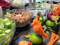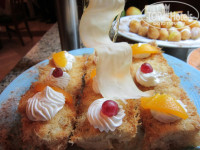 В ресторанах! В Шарме нас поразили торты и пирожные! Это нечто!!!!!!! Кондитеру большой респект!!! Супер! Ну это надо пробовать!!! А внешний вид!!! Сказка! В Рифе мы завтракали и обедали,близко от пляжа! Замечательные официанты -быстрые ,милые и очень весёлые! Всем -спасибо! Кормили вкусно!