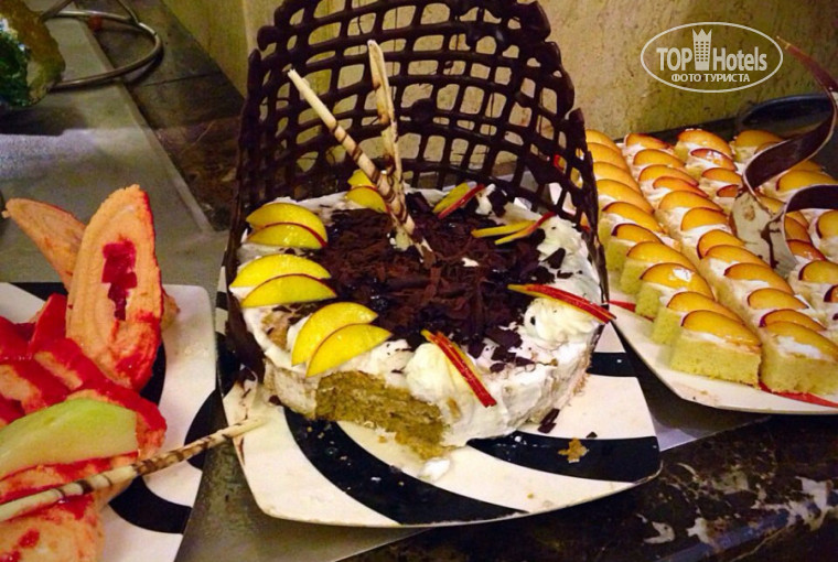 ПИТАНИЕ Питание как и во всем Египте, нового в принципе ничего не увидела, но и плохого тоже))))Было все, и мясо и рыба, овощи и салаты, макароны и картошка, всегда это было в разных видах, практически каждый день кальмары, были очень часто крабы, устрицы...днем в барах были хот-доги, гамбургеры, картошка фри, типа что то шаурмы, вообщем по еде претензий нет вообще! Я вообще удивляюсь от отзывов про еду, что мол есть нечего и т.д Хочется спросить, а что вам еще надо?)))))) В отеле есть 4 ресторана, мексиканский, итальянский, ливанский и индийский. Один раз можно посетить их бесплатно по предварительной записи на ресепшен. Записываться надо день в день, я советую с утра, т.к. потом либо мест нету, либо время позднее....В принципе рестораны не плохие, не могу конечно сказать что Супер!Но, мне понравились. Шеф повару Медхат отдельная благодарность!