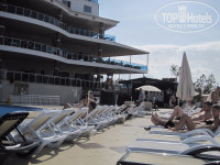 Море хорошее, теплое и чистое, заход галечный, поэтому заранее купили коралловые тапки и очень кстати – в воде есть большие камни, без тапок можно ногу поранить. Насколько хорошее море – настолько ужасный пляж: серый песок, какое-то подобие обрыва и поэтому лежаки очень плотно понатыканы. Уж навезли бы песка или этот разравняли бы для более пологого пляжа и можно было бы лежаки расставить попросторней; а то полное ощущение муравейника. Так что совет – если будете отдыхать в этом отеле и хотите нормальный песчаный пляж – надо ехать на Пляж Клеопатры.