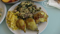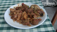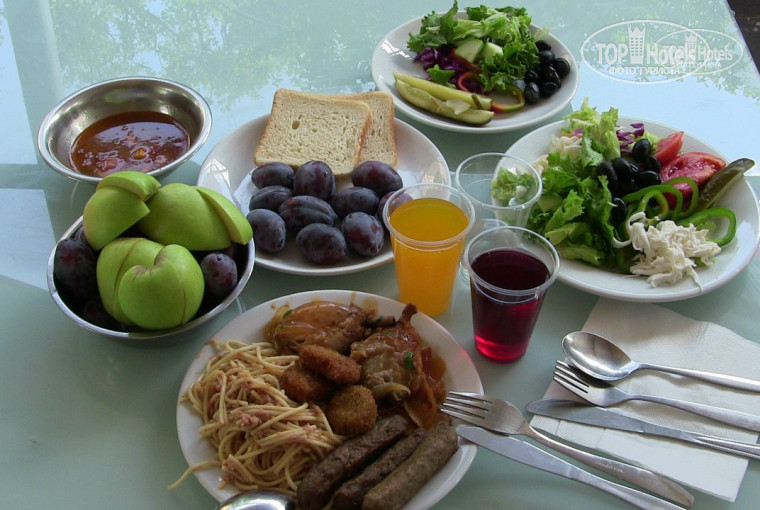 Всегда в обед и ужин было 2 вида мяса, окорочка и тушеная скорей всего свинина. Плов, рис, картошка, супы все с мясом, Салатов несколько видов. Мёд, молоко. Всегда напитки, 3 вида сока оранж, вишня, и яблочный.
