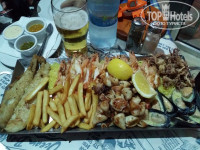 От отеля в 800 метрах, ориентир кофейня starbacks. За 25 евро огромный противень с рыбой, креветками, мидиями, осьминогами.