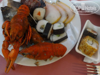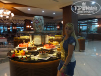 Вот тут конечно ДА! Я еще ни разу не видела, чтобы на ужин были раки, королевские креветки, роллы-хотя может я от жизни отстала. Не кажды день, конечно. Но за 10 дней-два раза такое было точно. В обычный же ужин рыба, куриное филе на гриле-всегда. Ну а остальное всё-в штатном режиме. Сладкий стол конечно-это всегда шедевры-даже есть жалко было. Несколько видов тортов, пирожные, классические турецкие сладости в сахарном сиропе и т.д. Кофе-машина всегда- кофе, капучино, эспрессо, горячий шоколад. На завтрак каша (своеобразная, но всё-таки), сосиски, омлет, оладьи при вас же жарят. В обед супы, нам непривычные- как пюре, но были. Много фруктов всегда-яблоки, арбузы, сливы, груши (несьедобные были), персики-это вот была сказка, какие они вкусные.