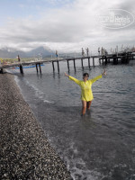 Море суперское! Теплое и чистое. Пляж и пирс хорошие, чисто везде. Работники постоянно бегают по пляжу и освобождают урны от бутылок и прочего мусора. Одно мне не понравилось, что из-за недостатка территории и большого количества людей лежаки стоят очень близко друг к другу, не покрутишься вместе с солнцем. Тут пишут, что кого-то кусали какие-то рыбки или что-то другое, не скажу. Ни разу ни меня, ни подругу ничего не укусило, хотя плавали мы до буйков! Опять, наверное, повезло (как и с номером!).