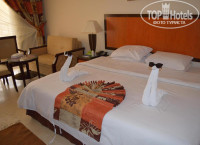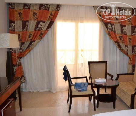 Обслуживающий персонал на ресепшен очень дружелюбный и оказывает любую помощь приехавшим отдыхающим. Обстановка в номере соответствовала всем нормам: кондиционер, две полуторные кровати, ЖКИ-телевизор, журнальный столик с креслами, зеркало, телефон,в шкафу купе вмонтирован сейф, маленький холодильник в котором безалкогольные прохладительные напитки. Ванная комната оборудована унитазом, биде, ванной, умывальником из гранита, феном, телефоном, зеркалами, шампунями, гелями. На балконе стоит журнальный столик и два кресла. Номера убираются ежедневно, полотенца меняются также ежедневно. Как недостаток можно указать то, что кондиционер громко работает и это мешает в ночное время для спокойного сна.