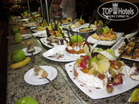 С питанием в принципе проблем не было, только время не очень удобное например обед с 13.00 до 14.30,еды много хотя качество и вкус оставляет желать лучшего, с фруктами совсем грустно, в барах есть перекусы в течении для : пицца на пляже, бургеры в Cliff и Panini, Соки блинчики и мороженое в Crepe&sweets. Напитки так же можно найти во многих барах только коктейли делают не везде. Воду выдают в неограниченом колличестве в Terrace Bar .Рестораны по записи ориентированы на платные блюда, из бесплатных все то же что и в основных ресторанах. Ходили в Итальянский Olive очень удивило отсутствие пиццы и пасты, в остальные уже не пошли. После полуночи все становится платным, к примеру банка пива стоит 5 долл., бутылка вина 10 долл. Для сравнения в соседних магазинах пиво 2,5 долл.,вино 5 долл. В холле отеля на ресепшен можно поменять доллары на фунты курс 7 фунтов = 1 доллар.