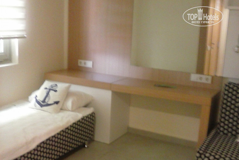 Номер состоит как бы из 2х комнат первая проходная с двумя диванами-кроватями (для детей), затем идет коридор и основная большая комната (см. фото номера)