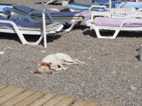 Пляж - идти 2-3 минуты максимум. Пляж чистый,море хорошее,водичка прозрачная. Вход в море мелкая галька,вода настолько прозрачная,что кажется вот вот достанешь ногами дно,но оказывается,что не так мелко. Гуляют по пляжу псы,но они не агрессивные. Прячутся от солнца под лежаками отдыхающих,либо в тени от зонтика роют ямку,чтобы лечь. Единственное НО - люди в отпуске не ленятся встать в 6 утра и пойти занять лежак,чтобы в итоге прийти на пляж после обеда на один час. В итоге,когда приходишь на пляж после завтрака около 9 утра все лежаки уже заняты. В этом весь менталитет наших соотечественников, и сам не съем и другим не дам.
