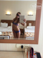Прилетели мы в Турцию 1 сентября 2015 года, до отеля где то часа два езды, под вечер мы были уже на месте, нас сразу поселили, вот только номер дали семейный, но заранее прочитав отзывы, мы подготовились)) дали 10 дол. на ресепшене и уже на следующий день, после полудня нас переселили в шикарный номер с видом на море как и просили)) Номер очень хорош, единое что кондик не правильно работал, он не выключался даже при открытом балконе) но это нас не огорчило а наоборот порадовало, а так прекрасно выполнял свое назначение ;)), все остальное в номере рабочее. (Холодильник, сейф, телевизор, светильники, фен, туалет, душ) И кстати уборку нам делали ежедневно, это удивило, поскольку в прошлом году отдыхали в более дорогом и более новом отеле, так там делали это только через день.