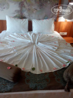 Приехали в третьем часу дня, нас сразу заселили, спасибо турагенту - дали номер с видом на бассейн и частичным видом на море, хотя мы платили за простой номер с видом на "задний двор". Причина была в том, что мы молодожены и туроператоров указала это при бронировании. В номере чисто, свежее бельё, полотенца, халаты (позже оказалось что халаты и некоторые предметы туалета-тоже достались нам как молодожёнам). Кондиционер работает, рядом с пультом инструкция в которой написано что он работает только при закрытой балконной двери. Сейф бесплатный. В баре газированные напитки и пиво - первое наполнение оно бесплатное. Дальше приносят только воду. Но и этого достаточно. В общем номером остались довольны.
