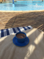 У бассейна. Есть всегда свободные лежаки, высокие с мягкими матрасами. В баре все напитки подают в стаканах, а чай или горячий шоколад в симпатичных пластмассовых синих чашках. У бассейнов сидят спасатели. Прыгать в глубокой части бассейна с бортиков никому не запрещают, хоть и есть таблички.