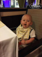 По детскому меню. Выбор небольшой и что там предлагалось в основном вареная курица или рыба, тефтели, картофельное пюре или рисовая каша. Все это без соли и специи специально доя деток. Детское меню располагалось в отдельной деткой зоне с детскими столиками и стульчиками для деток старше 3-4 лет. Для деток от 6 мес и старше есть специальные высокие деревянные стульчики.
