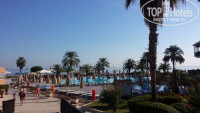 У отеля хорошее расположение, он на самом въезде в город и от него быстро дойти до центра города, сходить по магазинам. И при этом он не в том месте, где куча народу. Очень большая и зеленая территория, с кортами для тенниса, футбола, мини-гольфом. По всей территории растут апельсиновые и гранатовые деревья. Так как территория большая, люди не сидят друг у друга на шее и равномерно распределяются.