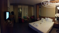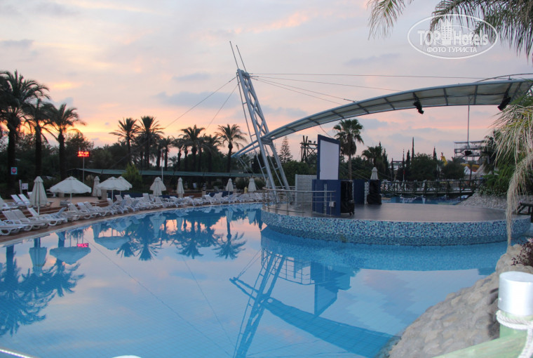 В общем и целом, можно сказать что я бы наверное даже еще разок съездила туда. Путевка была с 17 по 24 октября, 8 дней 7 ночей, но т.к. перелет был на Ямале, то получилось 6 дней 7 ночей. Вылетели из Москвы в 22 часа, пока то да сё, в отель приехали около 4х ночи, от аэропорта ехать 1 час 15 минут примерно до отеля и первая ночь уже засчиталась. А вылет в москву был в 9 утра 24го, и уезжали в 5 утра от отеля. Лично для нас это конечно неудобно -такие ночные приезды и отъезды, с годовалым ребенком. Честно говоря, муж покупая путевки тупо не посмотрел как мы летим. Но - путевка стоила 60 тыс. на 3х взрослых и ребенка 1,2 года, поэтому.... По приезду в отеле надо заполнить регистрационные карточки одну на номер. Нам дали номер во втором корпусе, 2204, по русски 3й этаж, окна прямо на аквапарк. Номер фэмили рум, заходишь - справа сразу вроде бы "предбанник", а оказывается комната, с кроватью и окном на отельный коридор, зеркало, тумбочка и детская кроватка, дальше туалет по той же стороне и большая комната. В номере плитка скользкая, поэтому тапки маленькому ребенку обязательно надо, иначе чуть мокро, сразу полет шмеля. Днем панорамные окна дают много света, а вечером темно как в одном известном месте, особенно в "предбаннике". Поэтому, сразу попросите торшер, или самим можно взять, если стоит под лестницей у входа. Мы попросили у русской девочки гида, чтобы она записала нас "на торшер"))), а потом сами еще один взяли прямо из коридора. Есть детские стульчики, тоже можно взять с собой в номер, и электрические чайники, они стояли у входа в наш корпус, на стойке для посуды. Еду ведь можно с собой брать из ресторана, и тарелки потом на эту стойку выносить. Из нашего корпуса удобно в ресторан было ходить через аквапарк, он с утра открыт, а вечером можно насквозь через 3й корпус. Что касается ресторана, еды очень много, мы не все попробовали, мясо разное, салаты, овощи гриль, свежие овощи, омлет, яичница, супы 2 вида, фрукты, десерты и торты, несколько видов чая, кофе. Сок -типа юпи)) Детский буфет есть - картофель фри, рис, макароны, мясо гриль или котлеты. Каши по-моему даже с утра были в основном ресторане, что-то типа гречки с молоком. Еще два работника стояли обычно на обеде, делали шаурму. Микроволновка стоит в ресторане, детское питание например разогреть. Плюс снэк-бары на территории и мороженое бесплатное(не очень вкусное). Алкогольные и безалкогольные коктейли, пиво, турецкая водка. Ну неплохо, неплохо. В фойе, где рецепшен тоже автомат кофейный стоит. Там и вайфай бесплатный, на счет интернета в номер предупредили сразу, что дорого и не тянет совсем. Поэтому все в интернете сидели там. Да, в номере комары, хоть мы и жили на 3ем этаже, все равно долетали, а на первом этаже их еще больше. Надо сразу попросить "спрей для помещения" от комаров у гидов, и позже принесут в номер, наш фумитокс не справлялся как-то. Ну нам-то ладно, ребенка искусали. Кондиционер не работал на холод, такое ощущение, поэтому жарко было в номере. У нас были два последних дня дожди, поэтому мы пошли плавать в крытый бассейн. В открытых бассейнах даже не купались ни разу, но они очень большие, и народу всегда было полно там, днем анимация была у бассейна, какие-то занятия йогой. Есть два детских бассейна, один в аквапарке с ледяной водой (может быть просто не сезон был теплой воды)))) и второй у снэк-бара. Мы ходили на море, море замечател