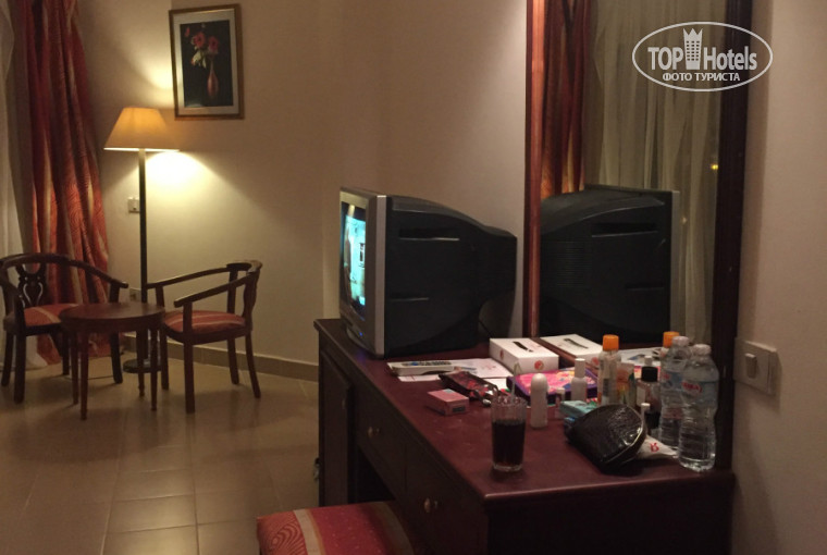 Номер нам с дочкой очень понравился, несмотря на то, что мебель и сантехника уже совсем не новые и видно что они уже много повидали на своем веку. Просторный и уютный номер. Всё, что нужно, было там и все работало ( телевизор, фен, холодильник, сантехника). Убирали номер хорошо. Одно только смущало, что уборщик постоянно спрашивал - Сегодня у вас убраться? Я просто думала что это их работа, и спрашивать такое не нужно, а нужно просто убраться. Один раз дали ему на чай 1$ и больше не давали, убирал номер все равно хорошо, в отличие от балкона. В один из дней нашего отпуска был "сильный" дождь (для нас Петербуржцев конечно это лайтово так сказать, поморосил называется 2 часа, к такому мы привыкли, но местные жители были не готовы к такому развороту событий, выходили на улицу с телефонами и снимали все на видео) после которого периодически выключался свет и ТВ спутник по началу не работал, но потом все заработало. Остаточное явление после дождя мы увидели на балконе на следующий день. Все, что было на балконе было в штукатурке- стулья, стол и окна стеклопакетов с низа до верха тоже были все грязные, и там еще за 2 дня нашего пребывания не убирались.
