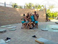 На второй день познакомились с кучей ребят, были брат с сестрой из Нижневартовска, а так же два парня и подруга с Уфы (точнее, с Караиделя). Потом еще с двумя девченками с Белгорода познакомились, и с двумя сестрами из Екб, вообщем скучать не пришлось) И вообще народ приятный крайне, "гопоты-быдла" вообще не видел. Пьют, веселяться, но все в меру и не напрягают. Молодежи достаточно много, родителей с детьми тоже, но поскольку отель огромный, найти место комфортное себе не проблема).