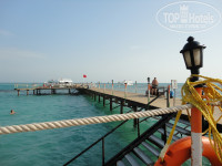 Территория отеля небольшая, в центре один бассейн, разделенный на территории по глубине от 65 см до 2 м, далее песчаная игровая площадка, зона детской игровой площадки и пляж с дайвинг клубом. На территории отеля 3 бара: один - в бассейне с напитками и мороженым, другой - у пляжа с напитками и закусками ( с 12-30 часов ежедневно пекли очень вкусную пиццу, к обеду привозили салаты, овощи, фрукты, сладости, мясо, гарниры - очень приятно пообедать днем на свежем воздухе), третий - в лобби (работает с 10 и до часа ночи, здесь можно заказать прохладительные и горячие напитки, алкоголь местного производства и импортный, имеются закуски для проголодавшихся). Море мелкое (хорошо для детей и тех , кто плохо плавает), дно каменистое, с понтона глубина достигает 2 м и более, можно поплавать с маской, хотя разнообразия рыб здесь мало... Лежаков хватает и у бассейна, и у моря.. драки нет