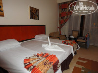 По приезду (приехали мы к 12 часам) нас встретили в отеле влажными полотенцами и стаканом сока, очень приятно! Быстренько заполнили все бумаги, после чего нас заселили через 30-40 минут. Номер оказался с хорошим видом и на бассейн и на море одновременно, и очень удобным по расположению, поэтому, несмотря на то, что заказывали номер с одной кроватью, а не с двумя - решили эту проблему просто - сдвинув кровати вместе)) Санузел большой, отделан камнем, есть биде, удобная раковина с большой столешницей, большое зеркало и маленькое выдвижное с увеличением, фен, душ, два вида подсветки (встретили трех муравьев за все время пребывания). В номере мебель нормальная, есть сейф удобный, телевизор, чайник с принадлежностями, мини-бар (ежедневно пополнялся водой питьевой 1 б и колой 2б маленькие), кондиционер работал исправно( но по ночам с ним было шумно, поэтому спали с открытым балконом), кровать удобная, освещение среднее. На балконе столик и два стула. Минус - нет сушилки для белья. Убирали в номере ежедневно первые три дня со сменой полотенец и постельного, затем стали не успевать убирать до обеда, поэтому пару раз мы просто отказались от уборки, потому что после обеда хочется немного отдохнуть в номере...