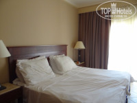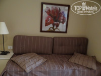 Отдыхали - двое взрослых и дети 5 и 11 лет. Был заявлен номер с красивым названием "Фэмили де люкс" - оказался обычный номер, разделенный раздвижными дверями на две части. В главной-две сдвинутые кровати, в проходной комнате- два импровизированных "дивана" (на бетонный постамент положены матрасы+серьезные диванные подушки). Таких номеров большинство в отеле. Уборка хорошая, все работало.