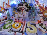 Огромный шатер на пляже ,просто тонны деликатесов ,еды и напитков. Шоу программа ,дискотека. Официанты развлекали гостей лучше аниматоров) Еще каждому подарки подготовили в виде всяких там хлопушек ,серпантина ,маски, игрушки и т.д.