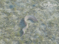 Так как зимой на пляже сильный отлив, мы ходили купаться в соседний отель, вход с пирса, но не глубоко а постепенный заход, дно песочек без кораллов. На нашем же пляже с пирса купаться нельзя было ,обрыв глубина огромная ,волны и красный флаг.