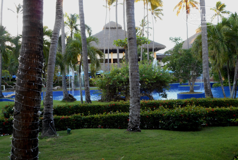 Территория: Территория отеля достаточно большая, много дорожек, которые плутают по его территории самыми разными путями, хотя как сказали местные это небольшой отель по меркам Доминиканы. Первые три дня я ходила с картой отеля, т.к. постоянно путалась в этих дорожках)) но после того как узнаешь территорию, сама находила кратчайшие пути к новым местам. Везде растут ухоженные кустарники с цветочками и без, пальмы большие и маленькие, с кокосами и какими-то еще подами, различные деревья и еще какие то растения. Территорию каждый день подметают, кусты подрезаю раз в неделю, все большие отвалившиеся листья пальм, например похожих на банановые убирают, все дорожки подсвечиваются фонарями сверху и снизу в темное время. Есть несколько больших и малых водоемов с фонтанами и пальмами, с деревянными и каменными мостиками через них, причем, иногда в самых неожиданных местах, купаться в них не полагается – они для красоты. На дорожках есть красивые скамеечки, есть качели –скамейки. Малюсенький недостаток, когда идет полив территории около нескольких корпусов пахло канализацией, не знаю, страдали ли гости в корпусах от этого, но именно во время полива он очень чувствовался. Бассейнов видела 3: один небольшой совсем недалеко от пляжа, большой бассейн с баром, с джакузи переходящий в детский, через него идет деревянный мостик, и небольшой бассейн за дальними корпусами. Может что-то еще и не нашла, т.к. время проводила у океана, а территория интересная и по ней можно долго ходить, обнаруживая интересные места и закоулки)) Бассейны чистые, мусор ежедневно достают из всех водоемов. В большом бассейне есть островки с пальмами и прочими кустарниками, «зонтики» по которым стекает вода. Для детей есть отдельная беседка и площадка с игрушками, видела, как с ними там занимаются. Есть площадка с большими шахматами и шашками, несколько магазинов с сувенирами, пляжной одежкой и пр. вещами. Есть спа в отдельно стоящем здании, там же на втором этаже тренажерный зал, окна его выходят на океан, несколько «шалашей» где делают массаж и отдельный «шалаш» для представителей тур операторов. Вобщем красивая, ухоженная территория, есть где побродить, побегать утром, посидеть и пофотографироваться. Мне очень понравилось оформление территории этого отеля.