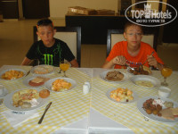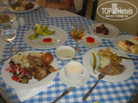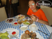 Питание: Основной ресторан "Панорама" очень большой, питание шведский стол, не скажу что очень вкусно, но много всего, очень очень хороший у них хлеб и выпечка. А так для нас мясоедов особенно не навыбираешься. Рыбы мало и какая-то не вкусная,но есть овощи и рис, вообщем голодными не будете, а наоборот. Фруктов тоже хватает и дыни и арбузы и ассорти коктейли. Конечно не хватает посуды и кружек, так как очень много народа и мыть ее просто не успевают. Если придешь попозже на завтрак, обед или ужин, то столов и посуды не хватает. Персонал в ресторане тоже очень хороший и достаточно терпеливый. Молодцы бармены и в барах и на террасе, всегда улыбаются и доброжелательные. Очень хорошие были бармены в баре на пляже (имена уже все забыла)