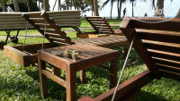 Лежаков много, народу мало, поэтому проблем с местами нет никогда и нигде, ни у бассейна, ни на прочей территории. На пляже лежаки не стоят – там это нигде не принято, все только на территории. Матрасы полотенца выдают бесплатно.