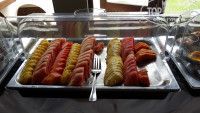Еда никогда не кончается. Когда бы мы не пришли - хоть в самом конце обеда/ужина/завтрака, например, всегда весь ассортимент есть. Никогда не было такого чтобы что то уже закончилось.