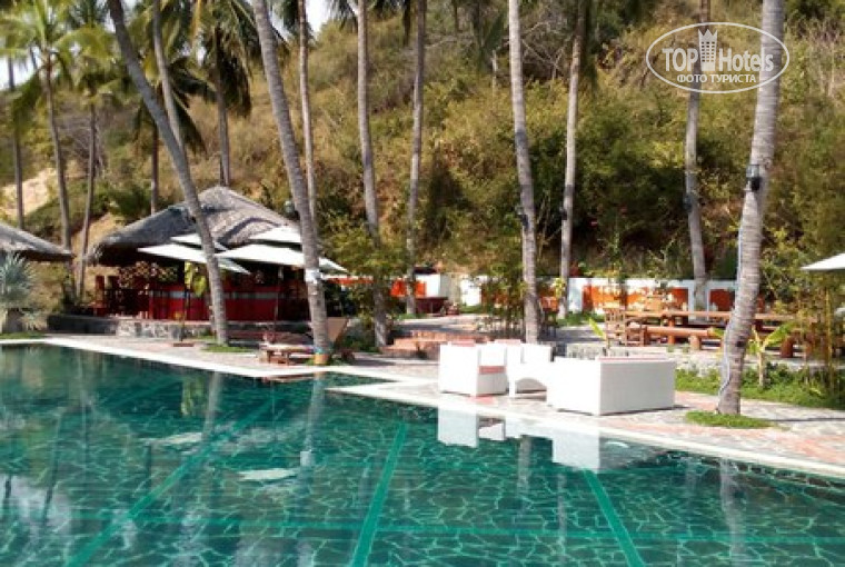 Очень зеленая, цветущая и красивая. Отель не новый. Но персонал очень старается поддерживать порядок в нем, это заметно. Все было чисто и аккуратно. Я часто ходил босиком по территории. Все было подметено. Бассейн чистый и теплый. В нем можно плавать вечно. Рядом с ним стоят удобные столики и кресла. Ночами мы пили пиво, чай, кофе, ели фрукты, плавали (бассейн работал круглые сутки) и смотрели на звезды. Было очень круто.