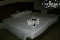 После ужина получили ключи от номера, нас провели и довезли багаж! Номер был в главном корпусе, №1103,нам очень понравился - всё работало исправно, телек плазма, сантехника в порядке, номер просторный с выходом на детскую площадку, уборка хорошая, за неделю 3 раза уборщик крутил фигурки из полотенец, ежедневно приносил воду и менял полотенца! При заселении на рецепции я попросила хороший номер, т.к приехали в отель отмечать мой день рождения, его и получила - кстати номер был трёхместный, а мы вдвоём))))