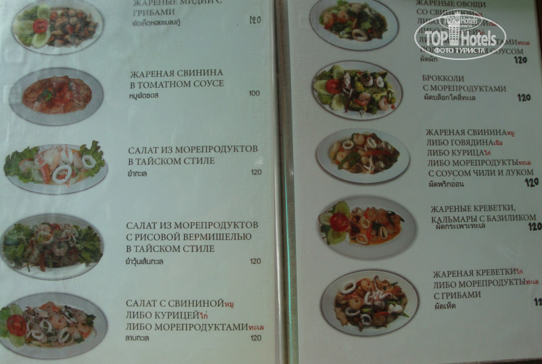 Добрый день! Мы в каше только обедали, ели только то, что с морепродуктами и конечно же пиво "Чанг" (местное). в среднем от 500 до 800 бат, учтите, что порции большие. На ужин брали только фрукты на улице, блинчики покупали на улице (с макашницы), с бананом или манго.