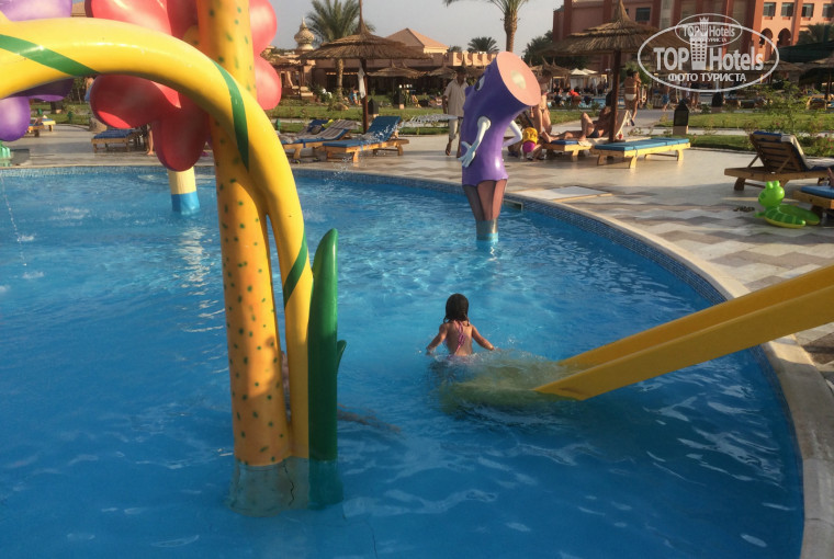 Обединены три отеля ,заборов нет , площадь большая ходить можно везде , газоны траву поливают , деревьев мало , цветов нет . Уберают хорошо мусора нет , первый раз за всю историю моих поездок в египет прошел небольшой дождь ЭТО БЫЛО СТИХИЙНОЕ БЕДСТВИЕ ! СВЕТ ПОГАС , все встало , вода стояла сантиметров 10 , ливневки нет в принципе , весь отель затопило, папуасы бегают со швабрами и гоняют воду из угла в угол просто ржачки и так весь вечер !