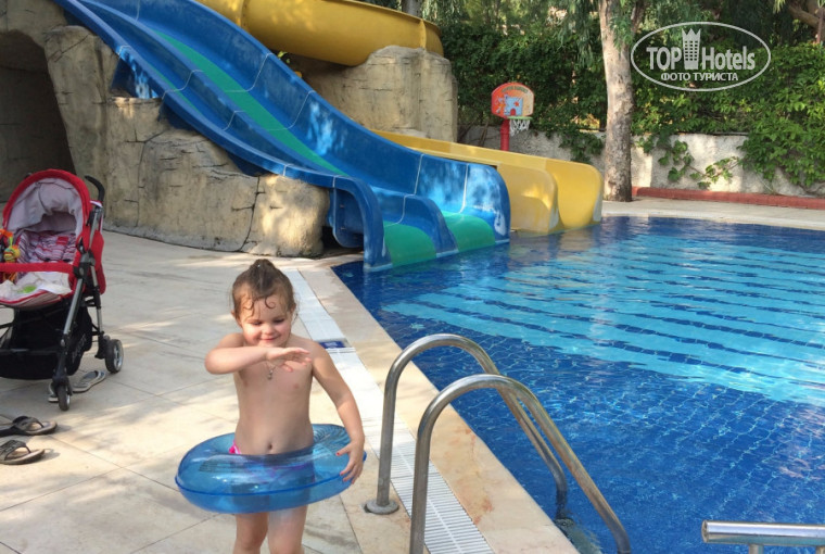 Отличный тихий,уютный отель для семьи с детьми.Поехали в конце сентября.Детишкам 3 годика и 7 мес.Очень переживала за погоду и питание для малышки.Но напрасно.В отель приехали в 23.30.Дети уже спали.Встретили дружелюбно и быстро.Предложили номера на выбор.Посоветовали с детьми взять бунгало с доплатой 50$.Мы согласились и не пожалели.Помогли донести вещи,все показали.Через пять минут принесли детскую кроватку.Номер небольшой,но уютный.Прямо рядом с детским бассейном,горками и миниклубом.В первые дни убирали каждый день,белье меняли уром,пока мы были на пляже.В последующие дни стали приходить в тихий час(((Естественно мы отказывались.Рядом в холле стояла тележка с чистыми полотенцами.Меняли сами.Кондиционер общий.Работал не очень хорошо.Но нам повезло с погодой.Спали с открытым окном.Нам было хорошо.Единственный минус,это слышно было анимацию вечернюю до 23.00.В спа центре рекомендую брать только хамам.Без массажа!Рааботают там таджички русскоязычные.Взяли мы хамам с массажем.Потом пожалели.Стали разводить на массаж за 20$ за сеанс.Наговорили,что у нас с мужем куча болячек и что все плохо!)))Просто развод.Мы отказались.Это хорошо,что мы не впечатлительные)))Это подпортило впечатление.Персонал замечательный,отзывчивый.Всегда можно обратиться.Практически все разговаривают по русски. До моря идти пять минут.Вход в море галечный.Так что я побежала покупать обувь.Очень было больно ходить.Море великолепное.Чистое,теплое.Питание в отеле отличное.Из фруктов: арбуз,дыня,виноград,яблоки и апельсины.Выпечка вообще нет слов.Вкуснющя! Все разнообразно было.Индейка,курица,баранина,говядина,рыба.Был диетический стол,каши,супы-пюре.Отдавала на кухню ,просила,чтобы в блендере пюре для малышки делали.Напитки любые.Пиво,коктейли,вино разное.Единственное вместо соков-напитки.Каждый день было мороженное.Короче +3 кг привезли все))).На экскурсии не ездили,так как были с малышкой.Вообщем ,кому интересен спокойный отдых без молодежных гулянок,рекомендую!)
