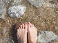 Море: наличие песчаного захода для деток (спец обувь все-таки желательна), понтон ( состояние на 4…ржавые крепления сначала испугали..), 2 пляжа на возвышенностях – возле площадки для волейбола и напротив бич ресторана.