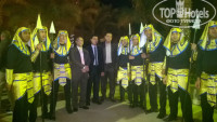 Встреча Нового года, началась с фуршета. Плавно переместилисЬ в шатер, где прошло шоу в стиле Египта. Новогодний стол, был на любой вкус. Мясо, кальмары, креветки, соленая рыба, клубника, ананасы, дыни, апельсины))) можно долго перечислять.