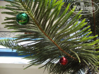 Сам отель находится в небольшом переулке, чуть в стороне от шумной центральной улицы. Часто это рассматривают как огромный минус, ведь туристический автобус не может подъехать к самому входу и туристов высаживают из автобуса метров за 200 до отеля. Вместе с гидом и чемоданами нужно пройти эти 200 метров по переулку. Сейчас могу сказать, что это скорее большой плюс, чем минус, ведь отель находится в стороне от шума, пыли и сумасшедшего дорожного движения. Такси кстати к нему свободно может проехать, не проезжает только большой туристический автобус. Сама территория отеля небольшая, но уютная и чистая. Есть бассейн. Поскольку мы приехали перед Новым годом, отель был украшен гирляндами, а на пальмах висели новогодние шары.
