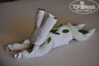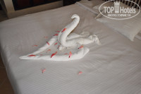 Заранее, через сервис "Вопросы об отеле" на этом сайте, попросила номер с видом на море. Номер дали с первого раза. Виды открывались просто замечательные. Номер комнаты 233 в корпусе №5. Ездили с дочерью, в заказе изначально было указано 2 кровати, но в этом номере нам предложили 1 двухспалку. Поскольку очень понравился обзор с балкончика, остались в нем. Полотенца меняли ежедневно, постель - через день. Убирали и лепили лебедей, слоников, сердечки, зайчиков и посыпали все это живыми цветами независимо от того оставляли мы на уборку или нет (оставляли через день по 1 дол.). Хлопчик, который принес вещи тоже был благодарен за 1 дол., но у нас не особо тяжелые сумки были. Вообще, нужно отметить, что на территории отеля все работало как часы. Все выполняли свои обязанности, были вежливы, неназойливы.