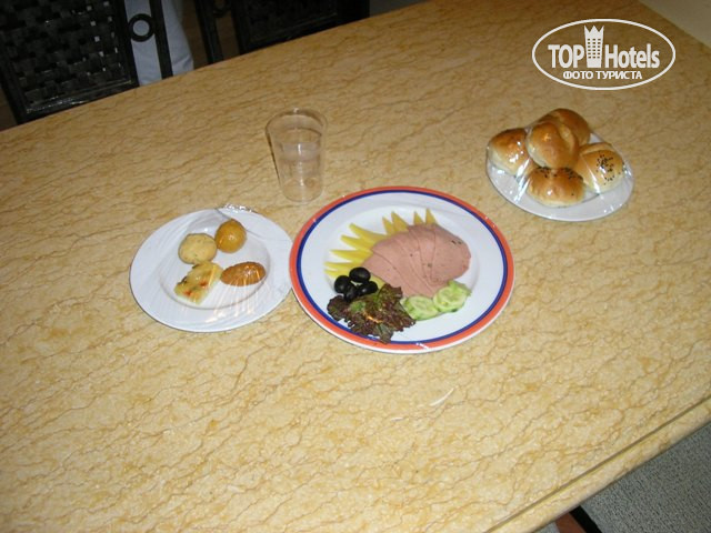 Огромная зеленая территория отеля. НО: могут поселить так далеко возле стройки, что до ресторана и моря топать по солнцепеку мин. 20. Территория большая, зеленая, очень красивая, 7 открытых бассейнов. Реально воспользоваться за весь отдых захотелось только одним самым большим у ресепшн - остальное время будете купаться в море. Рядом аквапарк - для гостей отеля бесплатный. Но народу там реально нет - кому интересно в 40 градусов жары плавать в старых обшарпаных бассейнах, когда лучше пойти опять же на море - духота не так ощущается. Обслуживание не радует - почтения к рускоговорящим гостям нет, поэтому подчеркнуто говорила с персоналом на английском. Ведут себя фамильярно, постоянные заигрывания раздражают (если вы, конечно, не за этим приехали). В номере убирали каждый день (но белье постельное сменили один раз за 10 дней!!!), хотя каждый день оставляли чаевые. Питание - кошмар для отеля такого уровня. У нас были завтраки и ужины. Выпечки и батонов - море. Морепродуктов, фруктов и соков - нет вообще. Так что для девушек меню - кошмар. С мясом тоже плохо. Кстати - когда едешь на экскурсию, они твое питание как "сухой паек" с собой дают (завтрак), а ужин - по возвращении в номере накрывают. Так это воровство полное!!!! Если учесть, что питание разовое, стоило нам 40$ на чел. где-то, то когда поехали на экскурсию - нам дали с собой - 5 булок, бутерброд с колбасой и яблоко. Ни грама воды!!!! Подняла скандал на ресепшн, заставила принести коробку сока. По возвращении на столе вместо ужина ждали батоны, 3 мизерных "пирожных", 3 кусочка колбаски и пустой пластиковый стакан!!!!! смотрите фото - оборжетесь. Модераторов настоятельно прошу не удалять!!!!!! Из плюсов - удобное местоположение - вечером по дорожке пешком до самого тусовочного места - Наома бэй с кучей клубов, магазинчиков и кафешек. Пляж отличный, вход в море с песка - из-за этого данный отель и выбрали. Короче - 4 * максимум, это с большим натягом )))
