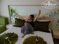 Отдыхали в начале сентября 2015 г, с мужем и подругой. В отеле 5 корпусов, размещены в одном квартале. Нас поселили в 5-й корпус, отдельно стоящий. Нам там очень понравилось: уютно, отдельный дворик с бассейном, выход в бассейн прямо с корридора корпуса. Тихо, спокойно, уютно. До моря через дорогу, метров 75 примерно. На пляже каждому отелю отведен свой участок. Море - просто замечательное! В период нашего пребывания вода в море + 30 была! Питание в отеле - это просто изобилие! Я бывала в разных странах и разных отелях много раз. Могу сравнивать. А мой муж - впервые посетил такой отдых. Он был поражен количеством еды и качеством. Все было очень вкусно! Ну просто - очень! Ресторан размещен в главном корпусе, и мы туда ходили на завтрак, обед, полдник и ужин. И нам даже нравилось преодолевать несколько раз в день расстояние от нашего корпуса до главного (метров 40) - в ресторан. Нам казалось, что там больше суеты и движения, а у нас очень тихо и спокойно. Много было фруктов! Прекрасная выпечка и десерты! В 50 метрах от отеля улица с множеством магазинов, где можно приобрести качественные товары. Отдых нам понравился!