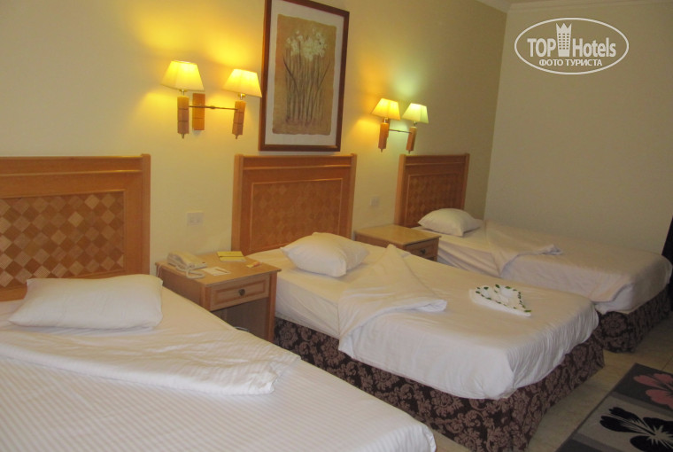 Жили в стандарте на троих взрослых, повезло с номером, очень просторный и с отличным видом на море и аквапарк, так как третий этаж. До поездки в отель здесь, на топхотелс, написала гэстрилейшен этого отеля Диане(как оказалось уже на месте - хороший и общительный человек, со всеми возникающими вопросами помогала), что переживаем, чтоб не дали номер с двухспальной кроватью и диваном(видела на фото такие номера), так как диваны в отеле не раскладные и для третьего взрослого не вариант. Она мне ответила, что все будет зависеть от заполненности отеля. По приезду же дали номер действительно хороший с тремя отдельными кроватями, может благодаря ей, может благодаря упаковке конфет кара-кум и семечек в шоколаде на рецепшене по приезду. Приехали мы до времени заселения, но практически сразу же всем одели браслеты и можно было пойти поесть.
