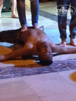 Не смотря на то, что отель не полностью заполнен, была замечательная анимация. Шеф аниматоров Али очень талантливый парень. Он очень пластичный, хорошо танцует, показывал фаер- шоу ( фото), лежал на битом стекле и доске с гвоздями ,а туристы становились ему на спину и на грудь. ( фото)., показывал силовые номера – поднимал два- три туриста и прохаживался с ними. Остальные ребята : Изо, Мости и Катя тоже прекрасно танцевали, проводили киндер диско и развлекали нас сутками. У анимации красивые костюмы ( фото). Ребята просто молодцы !
