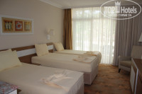 Прекрасный отель с красивой , ухоженной территорией, прекрасным обслуживанием и питанием! Отдыхали в отеле не первый раз, но в этот раз с ребенком 8 месяцев. Все понравилось, отдых очень порадовал! В плане питания, с ребенком проблем не возникло, на заказ варили суп, за что, отдельное Спасибо!!! Пляж и море - вне всяких похвал!!! Наверно минусы и недочеты у отеля присутствуют, но отдых был так великолепен ,что мы их не заметили! По поводу заселения, разместили нас быстро - минут за 15 , хотя и раньше времени (14-00) - даже просить не пришлось(видели что мы с маленьким ребенком). При бронировании указали рекомендации по расселению, их непременно учли. Заселили в третий корпус, все близко и тихо! В номере убирали очень хорошо, полотенца меняли каждый день; шампунь, гель и мыло тоже постоянно пополнялись. Пляжные полотенца конечно серые(далеко не новые) , но чистые и без пятен. В отеле шикарная анимация, грустить не придется никому. Есть детский клуб , сами туда не ходили(маленькие еще), но отдыхающие (чьи дети там бывали) восторженно о нем отзывались. Если кому важно, в номерах предоставляются халаты и тапочки.