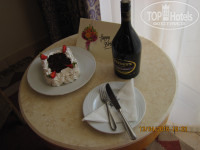 На ДР подруги в номер принесли тортик, прибор (единственное замечание, что прибор 1 - нас то было 2е... Именинник же не будет кушать свой торт один как эгоист ;-) ) и порадовала открытка....(мелочи, а приятно).