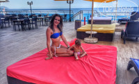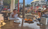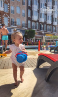 Отель позиционируется как молодёжный и тусовочный, а не семейный. Мы выбирали эгоистично. Ехали в низкий сезон, на майские, поэтому много шума не ожидалось. Так и было. Хотя дискотеку слышно немного было до 2:00. Брали вид на соседний отель специально, так как в номерах с видом на бассейн реально шумно. Все пьют, веселятся, прыгают на шезлонгах, музыка играет. В общем интересно. Но и с ребёнком всегда можно найти спокойный уголок. Много арабов с грудными детьми. Младшему в отеле было 4 мес, из Винницы -многодетная семья с тремя детьми. Пляж галька, ходить дочь не могла по ней, зато всегда сидела в тени👌🏻 или ходила за ручку. На пляже детская площадка с песочницей, на территории отеля качели, горки, спорткомплекс, бассейн глубиной 40 см и довольно большой по площади. В ресторане стульчики для кормления Икеа, в комплект к стульчику идёт одноразовый слюнявчик, влажная салфетка и сухая салфетка.