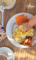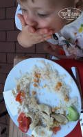 Утром детскую кашу, что брала с собой или местный рис на местном молоке. Варёное яйцо, хлебец с их диетстола, горбушку хлеба, сыр типа фета, помидор, огурец, яблоко, груша, апельсин, местная бутилированная вода. На выбор.