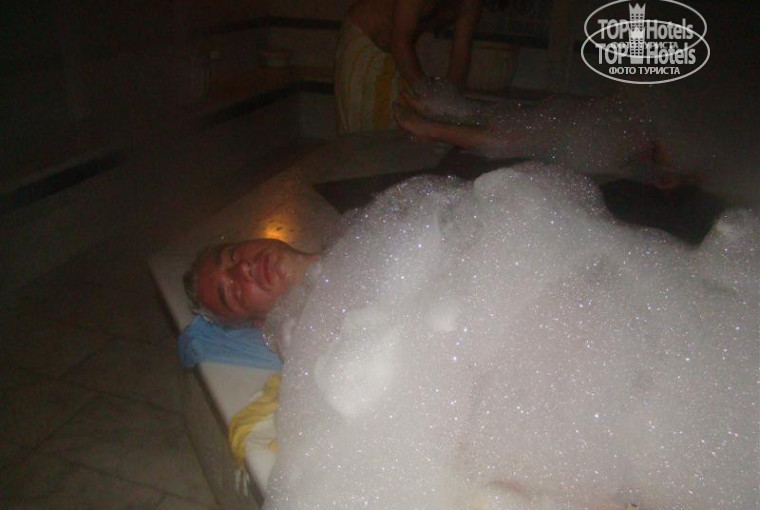 На территории также есть диско-бар, спорт-бар, фитнес-центр, турецкая баня (без процедур) - все бесплатно. Со всеми процедурами турецкая баня будет стоит 50$ и длиться 2 часа, хоть и дороговато, но посетить ее стоит обязательно (кстати баня лучше в отеле, не ведитесь на предложения гидов поехать в Аланию в баню за 40$, там поток людей, а в отеле занимаются только вами).